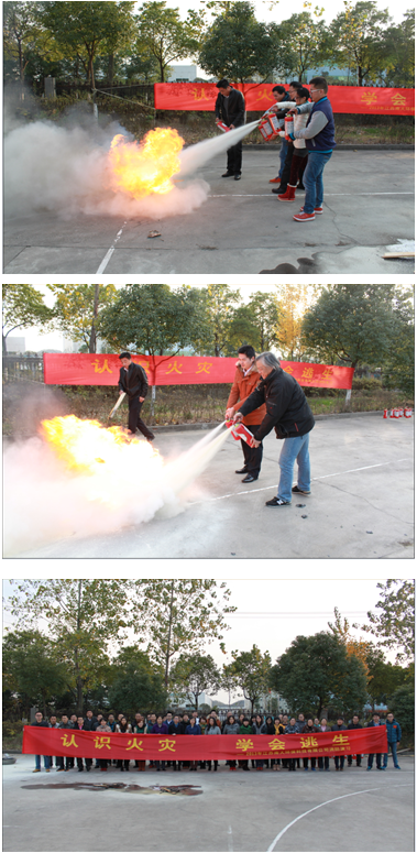 此次消防演习分为消防知识讲座、楼层逃生、灭火演练三个部分。首先是消防知识讲座,通过一些典型的案例,让大家了解火灾的危害性,并且懂得火灾的扑救方法及预防火灾的措施。其次是模拟遇到火情时紧急疏散,通过消防广播发出预警铃声,确认火情后,人员紧急撤离现场,公司义务消防队员进入现场参与被困受伤人员的救护,最后顺利撤出火灾现场。最后是进行灭火器的实际操作演练,由工作人员讲解灭火器的正确使用方法,大家积极按照要求进行模拟,掌握了灭火器的基本使用要领。