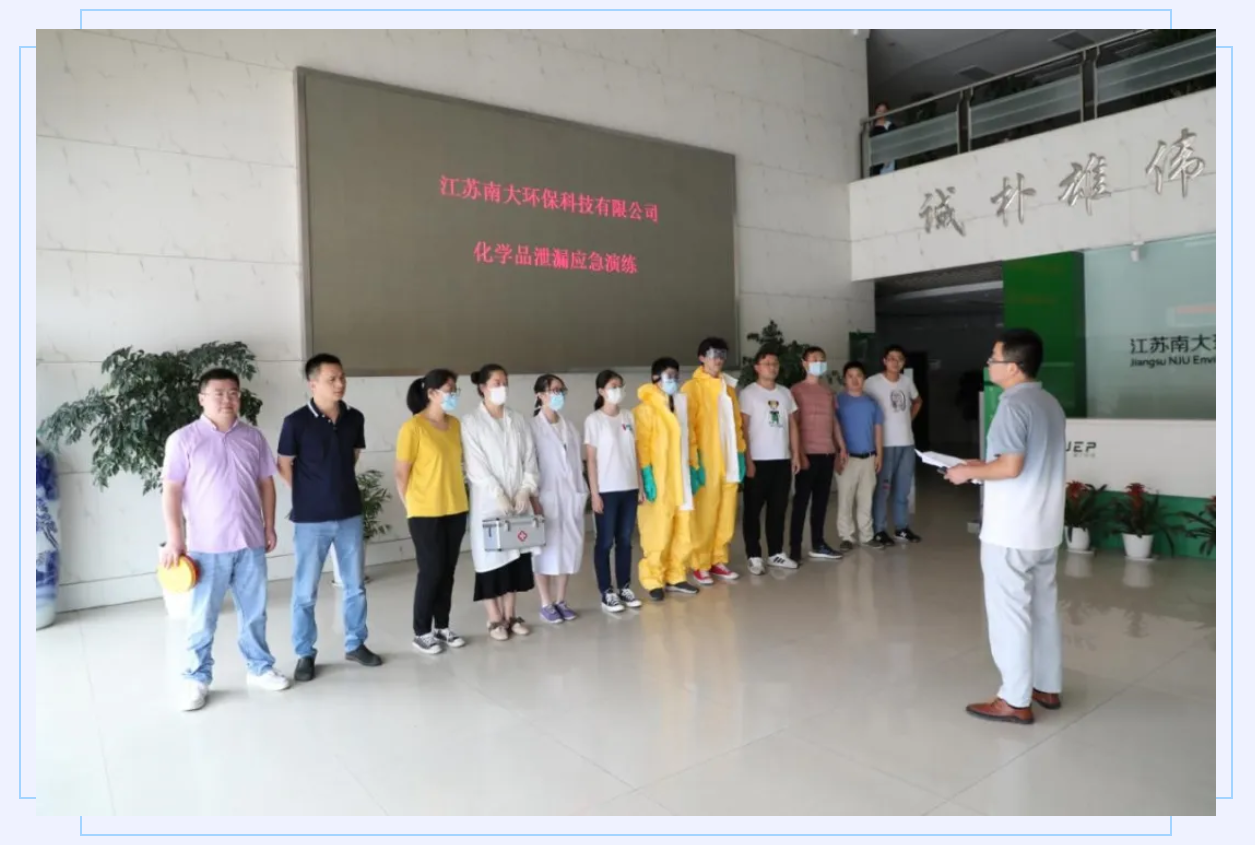 演练模拟的背景是实验员在取硫酸药剂时不慎将浓硫酸溅到手臂,忙乱中硫酸瓶从试验台跌落至地面,硫酸泄漏。“事故”发生后,实验室其他员工立刻按照硫酸MSDS说明要求对伤员紧急救护并汇报公司领导,公司领导接报后立即启动公司化学品泄漏应急预案,迅速组织人员抢救受伤人员、紧急处置泄漏的硫酸、疏散周边无关人员,并对处置过程进行环境跟踪评价。为进一步强化员工记忆,快速掌握应急响应救援知识、熟悉救援程序和方法,演练结束后,演练指挥部对本次演练进行总结,指出实际演练中流程以及操作上存在的问题并给予指导。