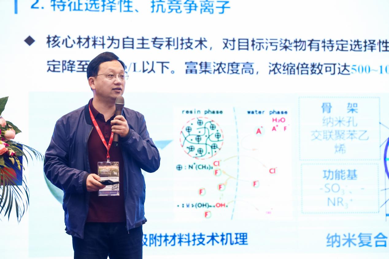 国家环境保护有机化工废水处理与资源化工程技术中心主任、南京大学教授/博导、澳门皇冠博彩副总经理张炜铭为现场嘉宾详细介绍了深度除氟除磷一体化解决方案的特点及优势。他表示,随着我国经济发展与环境污染日渐严重,应急水处理需求越来越多,例如企业废水库溃坝、废水泄露、黑臭水体治理等,需要在短时间内处理至地表水水质标准后达标排放。澳门皇冠博彩深度除氟除磷撬装设备可满足不同场景下的水体应急处理需求,依托自主研发的特定选择性、抗竞争离子核心专利技术,能够很好地解决水处理行业中氟化物和磷酸盐的深度去除难题,废水经过撬装设备的工艺流程及深度处理后,出水可达出水F-≤1.0mg/L、PO43-≤0.1mg/L,根据需求可实现出水氟化物稳定低于0.5mg/L,PO43-低于富营养化限值0.02mg/L,有效改善了水环境和水生态。